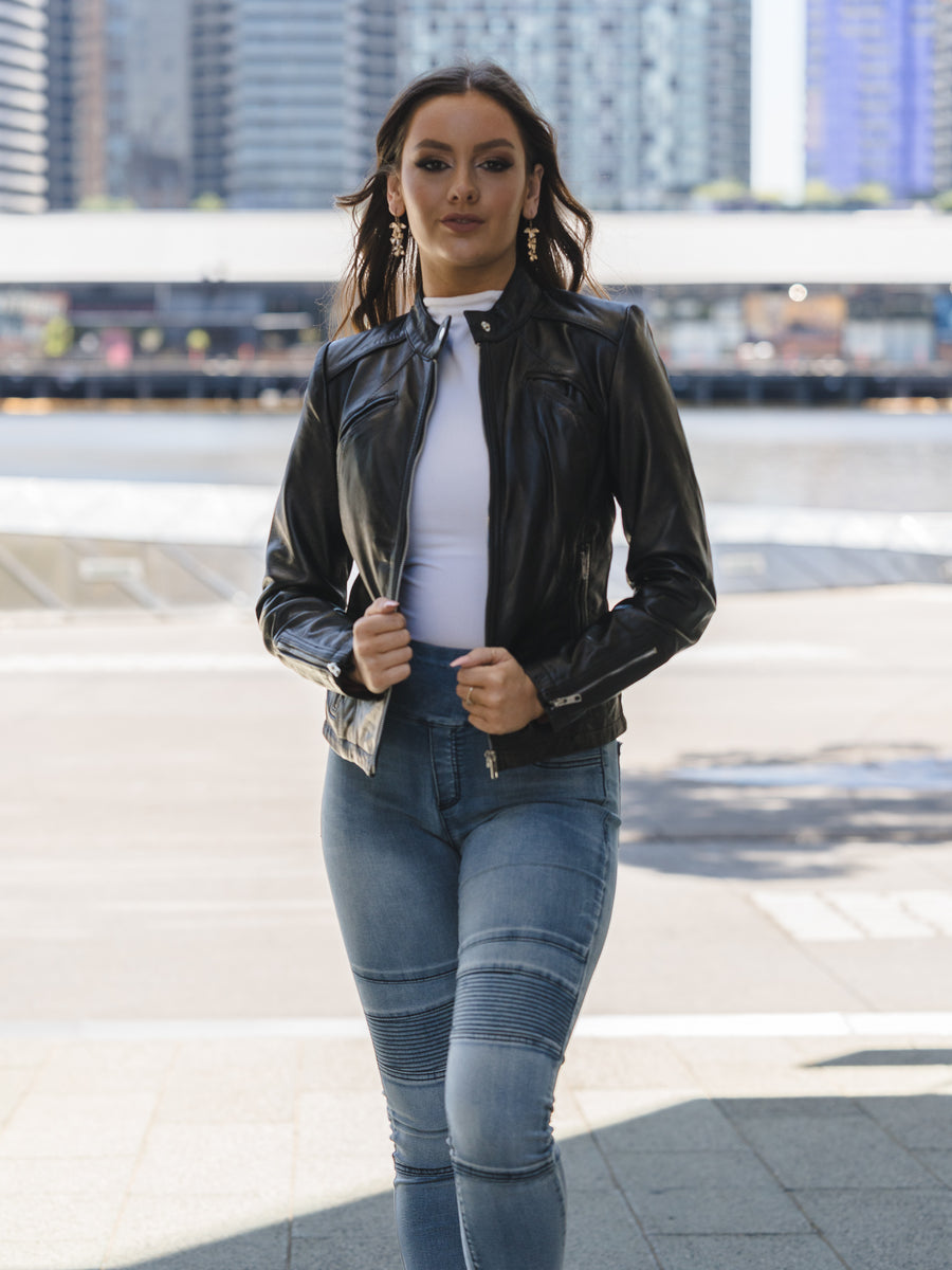 Shades of brown are always so irresistible, so what happens when a beauty like you wears them? Let your clothes be a self-reflection of you so make wise choices with them. Owning this chocolate brown Valencia leather jacket with a buckle bound collar and pockets for convenience will be a blessing to your wardrobe